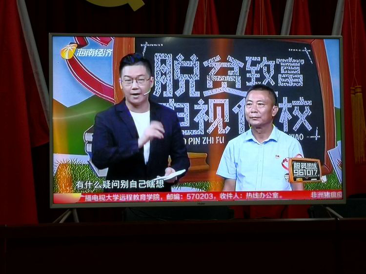2019年5月6日晚,海口擔(dān)保扶貧小組前往??谑协偵絽^(qū)三門坡鎮(zhèn)清泉村參加扶貧電視夜校活動。