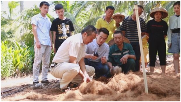 節(jié)目中,張軍老師從選種、育種、選苗、種植、施肥等幾個(gè)方面,實(shí)地演示、詳細(xì)講解,讓農(nóng)戶們清楚地了解前期椰子種植的具體方法,并讓他們實(shí)際操作,隨即現(xiàn)場答疑解惑。